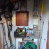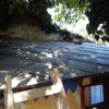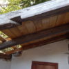 In einem kleinen Anbau des Seitengebäudes habe ich mein Gartenwerkzeug untergebracht. Im letzten Jahr war die Undichtigkeit des Daches und die gemorschten Balken nicht mehr zu übersehen und meine Motorsense wurde nassgeregnet. Es war höchste Zeit für eine Erneuerung des Daches.