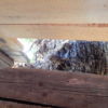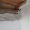 Innen wurde die Hütte mit Moltofill neu verputzt, so dass die Zwischenräume zwischen Holz und Mauer verschwunden sind und die Hütte wirklich dicht ist. Als das Dach komplett neu gedeckt war, habe ich rundherum Zierleisten angebracht und so die Lücke zum Dach geschlossen.
