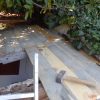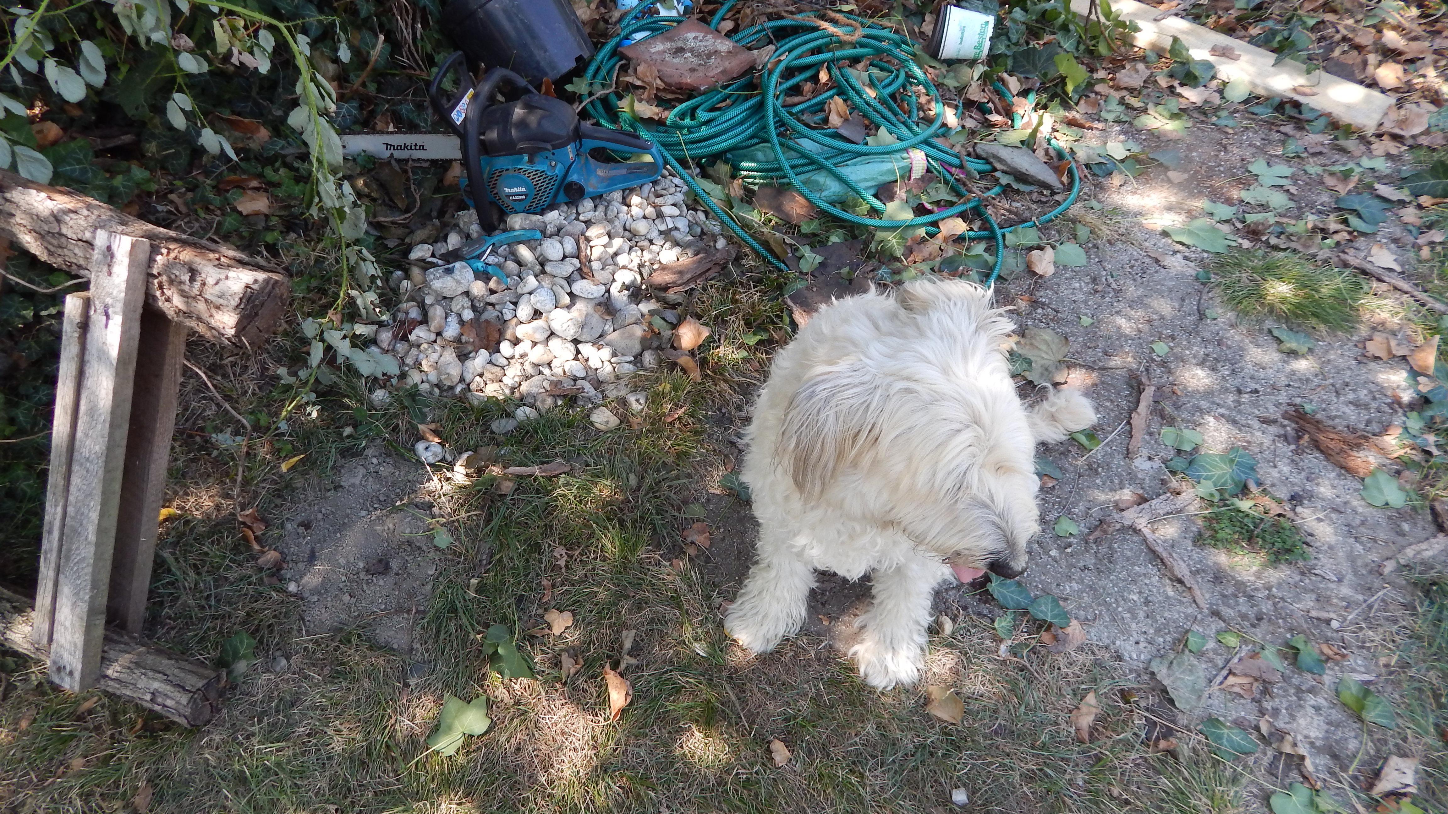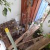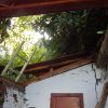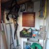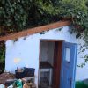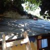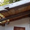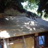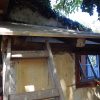 In einem kleinen Anbau des Seitengebäudes habe ich mein Gartenwerkzeug untergebracht. Im letzten Jahr war die Undichtigkeit des Daches und die gemorschten Balken nicht mehr zu übersehen und meine Motorsense wurde nassgeregnet. Es war höchste Zeit für eine Erneuerung des Daches.