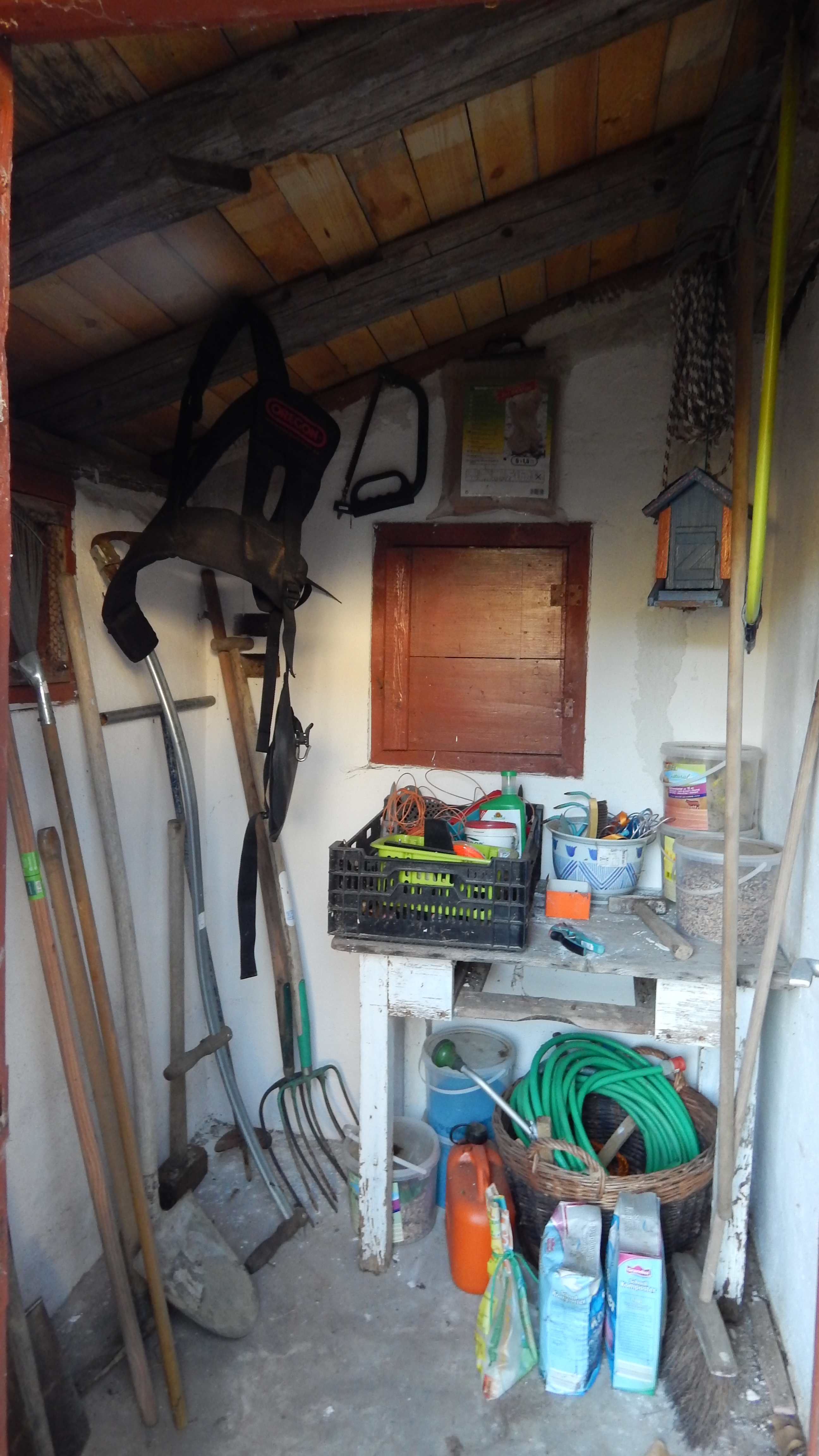 Mit Eternit muss ich nicht mehr arbeiten, das Material bricht schnell und staubt beim Sägen. Dennoch, wenn man es lagernd hat, wäre es blöd, man würde extra etwas anderes kaufen. Was noch fehlt, ist die Lasur außen für die Bretter, das kommt dann noch im nächsten Frühjahr.