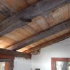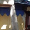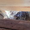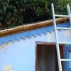 Innen wurde die Hütte mit Moltofill neu verputzt, so dass die Zwischenräume zwischen Holz und Mauer verschwunden sind und die Hütte wirklich dicht ist. Als das Dach komplett neu gedeckt war, habe ich rundherum Zierleisten angebracht und so die Lücke zum Dach geschlossen.