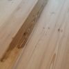 Beim Verlegen der Dielen ist eigentlich nur die erste Dielen kritisch, besonders dann, wenn die Wand nicht gerade ist. Dann muss nämlich diese erste Diele der Länge nach korrekt zugeschnitten werden. Die Dielen habe ich direkt an die OSB-Platten geschraubt mit Self-Cut-Schrauben, vorbohren war also nicht nötig. Manche Dielen sind verzogen, so dass man sie zunächst an einer Seite festschraubt und dann sukzessive mit einem Hilfsholz der Länge nach in die Fuge bringt. Ist eine Diele zu verzogen, das kommt vor, dann einfach in der Mitte auseinanderschneiden und in zwei Teilen verlegen. Der Dielenboden muss nach dem Verlegen geschliffen werden, weil bei den Nut-und-Feder-Dielen die Übergänge kantig sein können. Diese Kanten muss man wegschleifen, man behandelt da aber natürlich gleich den ganze Boden mit.