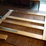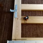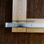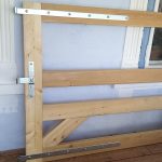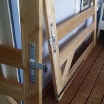 Nachdem die beiden Rahmen für die Torflügel fertig waren, habe ich die Ladenbänder verschraubt. Für die Länge findet sich im Netz der Hinweis, dass die Ladenbänder etwa 2/3 der Länge eines Torflügels haben sollen. Ich habe auf einer Internetseite den Hinweis gefunden, die Beschläge leicht (!) schräg zu verschrauben, damit das Tor hinterher nicht hängt. Dieser Tipp erwies sich als genial, die Flügel waren hinterher exakt in der Waage.
