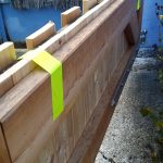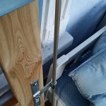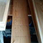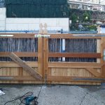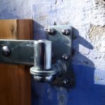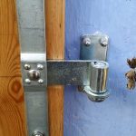 Beim ersten Einhänge der Torflügel haben wir nicht schlecht gestaunt, als wir festgestellt haben, dass bei einigen Kloben noch Spiel war (d.h. dort lag das Ladenband nicht exakt auf). Erklärbar durch die Bohrlöcher, die 2-3 mm Spiel haben und durch die Klobenplatten, die bei unserem Mauerwerk leicht verschoben waren. Hätten wir als Untergrund Beton gehabt, es wäre leichter gewesen. Die Höhenunterschiede haben wir mit Beilagscheiben bzw. Passscheiben ausgeglichen, so dass die Flüge nun exakt hängen. Was allerdings passiert ist: Ein Torflügel war leicht verzogen, hier haben wir innen dann ein Lärchenholz quer montiert, so dass der Flügel gerade stand.