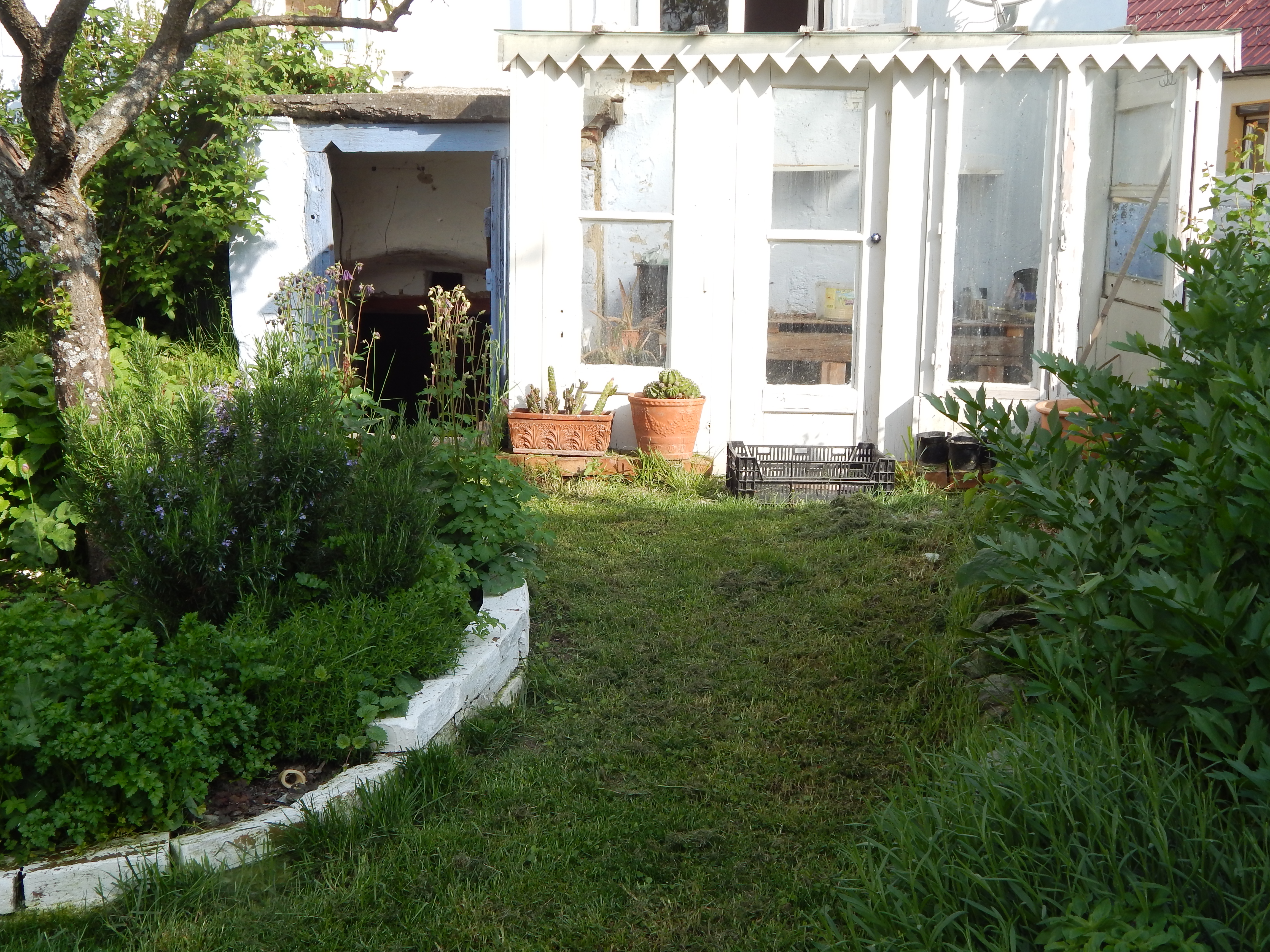Würde Geld keine Rolle spielen, ich hätte bei mir eines dieser wunderbaren, englischen Gewächshäuser aus Metall und Glas bei mir stehen. So aber habe ich mein Gewächshaus selbst gebaut und ich finde, es muss den Vergleich nicht scheuen. Plan gabs für das Glashaus keinen, aber auch hier habe ich wieder das Einverständnis meines Nachbarn geholt, weil das Glashaus direkt am Grundstücksrand angebracht ist.