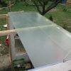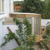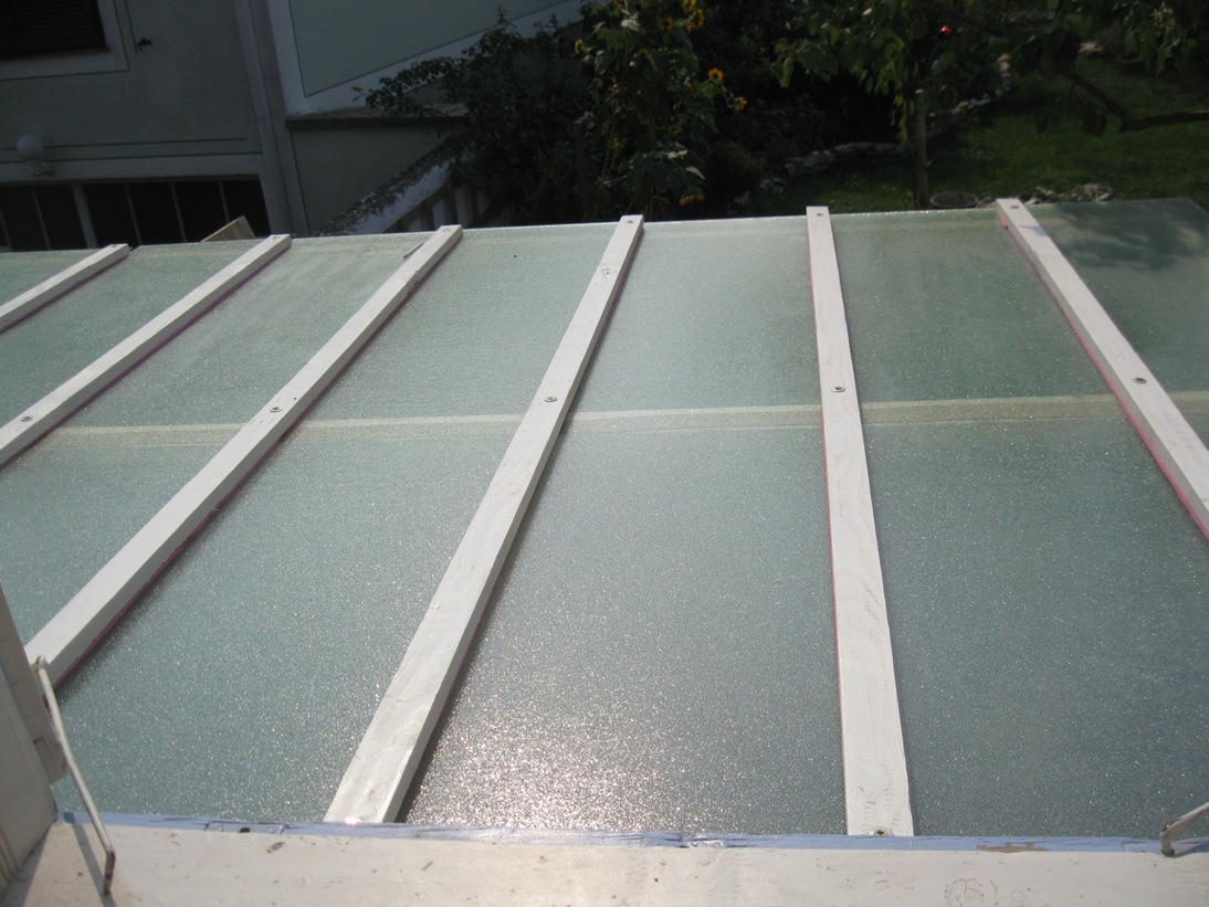 Ich würde das Gewächshaus heute wieder so bauen, es hat sich bewährt. Vom benachbarten Betondach des Kellereingangs fliesst bei Regen Wasser in einen großen Kübel, so dass ich auch im Gewächshaus immer genügen Wasser zum Gießen habe. Das Bohren der Glasplatten hat nicht funktioniert, in Zukunft mache ich um Glasbohrungen einen großen Bogen und überlege mir *gleich* Alternativen dazu.