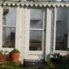 Als Verziehrung habe ich ein gezackts Holzbrett genommen, das ich and ie Konstruktion geschraubt habe. Schliesslich wurde das gesamte Gewächshaus innen und außen weiss lackiert.
