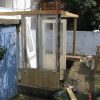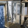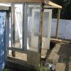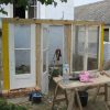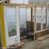 Ich habe für die Wände genommen, was verfügbar war: Alte Türen, alte Fenster, dazwischen Holz. Fenster und Türen habe sich angeboten, es sollte ja ein Glashaus werden. Die Türen, Fenster und das Schalungsholz habe ich direkt am Gerüst befestigt.