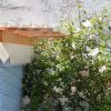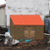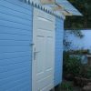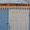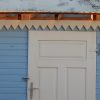 Zur Verzierung habe ich rundherum gezacktes Holz angebracht, das ich vorher weiss lackiert habe. Die Tür wurde ebenfalls frischlackiert, die Holzhütte selbst in einem zum Haupthaus passenden Farbton.