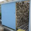 Im ersten Jahr habe ich mein Brennholz unter einer riesigen Plane gelagert und so vor Nässe und Schnee geschützt. Die teure Plane war schon nach einem Jahr in Fetzen, weil wir hier in der Region sehr heftige Herbst- und Winterstürme haben. Im Nebengebäude war kein Platz, also habe ich mich entschlossen, eine Hütte zum Lagern von Holz zu bauen. Sie sollte direkt gegegenüber des Haupteingangs stehen, so dass die Wege für den Holztransport ins Haus kürzestmöglich sein würden.