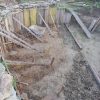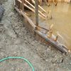 Auf den fertigen Beton kam dann die Schalung für die Betonstützmauer.