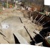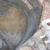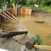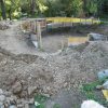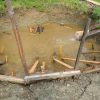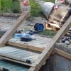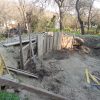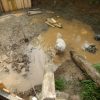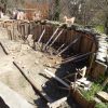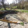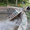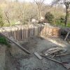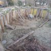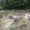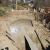 Im Dezember, nachdem es den ganzen Herbst geregnet hatte, ist der künftige Pool entlang der provisorischen Abstützen eingebrochen. So gut es ging, habe ich notdürftig die noch stehenden Stützwände mit Querstreben abgestützt und habe dann aufs nächste Frühjahr gewartet.