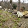 Im Februar habe ich die Arbeit wieder aufgenommen. Ich war mir sicher: Ich will spätestens Ende Mai im Pool baden. In der Baugrube hatte ich bereits mit einer Stufe begonnen, dort sollten später Wasserpflanzen hinkommen. Ich habe alle verfügbaren, im Garten verstreut liegenden großen Steine zum Pool geschleppt, um sie für den künftigen Poolrand griffbereit zu haben. Ich wollte auch einen ungefähren Überblick über das vorhandene Material haben. Die Baugrube war im Großen und Ganzen ausgehoben, sieht man von diversen Nacharbeiten ab, die nochmal mindestens 45 Scheibtruhen voll Material liefern sollten.