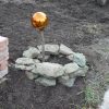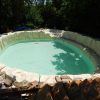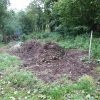 Der erste Spatenstich ist im Juli 2013 erfolgt. Um ungefähr zu sehen, wie groß der Pool einmal werden sollte, habe ich Steine im Kreis gelegt. Gleich den ersten Aushub habe ich dazu benutzt, dort aufzuschütten, wo das Gelände „zu wenig“ war.