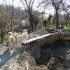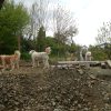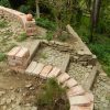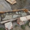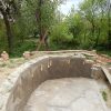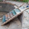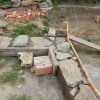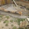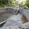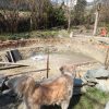 Im März ist viel passiert. Erstens fiel die Entscheidung, die Hälfte des Poolbodens zu betonieren. Bis dahin hatte ich überlegt, „dass das schon irgendwie auch so halten würde“, habe mich aber, nachdem ich das Gewicht und den Druck des Wasser berechnet habe, zum Bau eines Fundaments und einer Stützmauer entschlossen. Dazu wollte ich die Hälfte des Pools mit einer Stützmauer versehen und  zwar jenen Teil, an dem Material aufgeschüttet worden war. Ich wollte nicht riskieren, dass die rund 75.000 Liter Wasser, die später im Pool sein würden, mir die aufgeschütteten Teile nach außen gedrückt hätten. Also wurde hier Material berechnet und herangeschafft: Schotter, Zement, Ziegel als Füllmaterial, Eisenstangen zur Verstärkung der Betonwand, Eisengitter. Dazu habe ich aus der Umgebung wieder Ziegel geholt, die ich für die Gestaltung der Umgebung nutzen wollte.