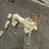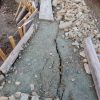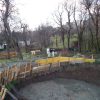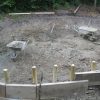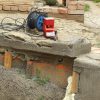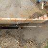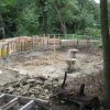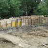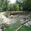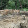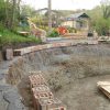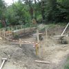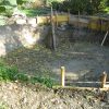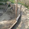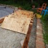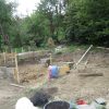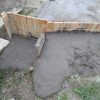 Nachdem die Schalung fertig war, kamen weitere Eisengitter in die Schalung, die überlappten, dann wurde Beton eingegossen. Ein kleines Malheur ist passiert, als der Beton an einer Stelle unter der Schalung durchgerutscht ist, weil ich dort nicht genügend befestigt war. Dort ist dann mit einem Ruck der Beton weitergerutscht und es entstand ein kleines Loch, das später mit Bauschaum geschlossen wurde.