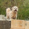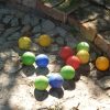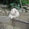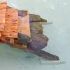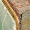 Anfang Mai wurde die Poolfolie, das Vlies und die Kokosmatte geliefert. Die Folie hatte ich vorher großzügig bemessen mit einem „Rand“ von einem guten Meter rundherum. Die Reste, die abfielen, habe ich später verwendet, um den Sandstrand um den Pool mit Folie auszukleiden, so dass kein Gras dort wachsen kann. Dem Folienlieferanten habe ich genau mitgeteilt (mittels Zeichnung), von welcher Seite ich die Folien in den Pool einlegen wollte, genau so wird dann nämlich die Folie für das Abwickeln vorbereitet. Die Folie wird auf Palette geliefert, gegen Bakschisch hat sie mir der Spediteur direkt an den Pool in die untere Hälfte des Gartens geführt. Als Vlies habe ich das stärkste verfügbare Vlies genommen, das es auf dem Markt gibt. Innen im Pool habe ich Holzbretter an den Beton bzw. an die Ziegel geschraubt. Die Holzbretter habe ich vorher mit Bootslack dreimal lackiert.