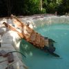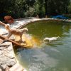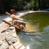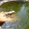 Dennoch war der Pool zum Ende des Sommers plötzlich glasklar. Leider hat es zwei Wochen später zu regnen begonnen, Blätter fielen in den Pool und haben ihn dunkel gefärbt, verursacht durch die Huminsäure in den Blättern. Man muss das abwarten. Keinesfalls tue ich mir die chemischen Keulen an, die anderen Teichbesitzer immer wieder verwenden, weil ihnen die Geduld fehlt, der Natur ihre Zeit zu lassen.