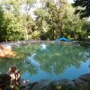 Im Jahr 2012 habe ich den Platz, an dem heute der Naturpool steht, noch für mein Brauchtumsfeuer genutzt. Der Hand war dort in zwei Richtungen schräg: Nord-Süd und West-Ost. Der Platz ist durch die vielen Bäume und Büsche fast nicht einsehbar und im Geiste hat sich da dann plötzlich der Pool aufgetan. Ich hatte