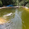 Ich hatte lange erwogen, in den Pool eine Sandfilteranlage einzubauen und den Pool auch zu chloren. Das hätte klares durchsichtiges Wasser bedeutet, wie man es sich von einem Pool eigentlich erträumt. Was dagegen sprach, war: Eine Sandfilteranlage für einen Pool mit 75.000 Liter Wasser kostet eine Menge Geld. Zusätzlich muss die Pumpe mindestens (!) 12 – 14 Stunden am Tag laufen, damit das Wasser umgewälzt wird, das kostet zusätzlich eine Menge Strom. Dazu kam noch, dass das Wassergesetz bei uns geändert wurde, das nun seit Anfang 2015 vorschreibt, dass für Pools, die mehr als 10 m³ Wasser haben, eine eigene Steuer zu entrichten ist, weil es sich dabei genau genommen um „Abwasser“ handelt, weil diese Pools häufig über den Winter ausgelassen werden. Also habe ich mich für die biologische Variante entschieden: Wasserpflanzen und Natur. Mir war klar, dass es einige Jahre dauern würde, bis sich der Pool wirklich eingespielt hat.