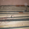 Das Holz für den Parkett habe ich übers Internet gekauft. Ich habe für 24 m² rund 120 Euro bezahlt, das war wirklich eine Okkasion. Der Parkett war dunkel und ca. 7 mm stark. Dazu habe ich Dämmwolle, Folie als Feuchtigkeitssperre, Kork auf Rolle, Parkettsiegellack, kleinste Bohrer und Schrauben für die Befestigung des Holzes an der Unterkonstruktion, große Schrauben und Dübel für die Befestigung der Holzkonstruktion im Estrich, Holzleim sowie Baustaffeln. Teilweise habe ich hier die vorher aus dem Küchenboden herausgerissenen Staffeln wiederverwenden können.