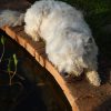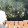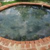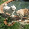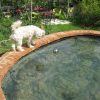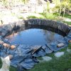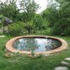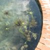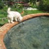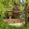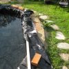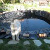 Der Teich ist für ein Erstlingswerk gut gelungen. Ich würde heute den Teich heute nicht ganz so tief machen, weil von meinem Gefühl her auch etwas weniger tief genügt hätte. Zudem lässt sich ein nicht ganz so tiefes Becken leichter reinigen. Ich habe den Fehler begangen, mittelgroße Kiesel in den Teich zu werfen, das sieht zunächst zwar hübsch aus, macht aber eine Reinigung mit dem Sauger praktisch unmöglich, da die Kiese den Sauger verstopfen. Ich habe in den folgenden Jahren viel Zeit damit verbracht, die Kiesel wieder rauszufischen. Jetzt, nach drei Jahren. setzen die Ziegel bereis Moos an und werden grün. Ich bin mir noch nicht sicher, ob das so bleibt oder ich das entfernen werde. Zwei der Ziegel in der Teichumrandung sind abgesplittert, weil sie sich mit Wasser vollgesogen haben und dann im Winter zerplatzt sind, die müssen ausgewechselt werden. Im Grunde ist der Teich eine eher einfache Arbeit, das kann mit Sicherheit auch eine ungeübte Handwerkerin.