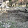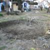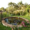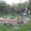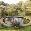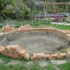 Ich habe zuerst einen Plan gezeichnet. Die Herausforderung war, dass das Gelände dort, wo der Rosenteich sein sollte, abschüssig war. Deshalb habe ich mich dazu entschieden, das Wasserbecken mit einer Mauer aus Ziegeln einzurahmen, um so das Gelände auszugleichen. Das Becken ist an der tiefsten Stelle ungefähr 1,20 m tief. Die Anlage einer Stufe, auf der später Pflanzen ihren Platz finden würden, ergab sich daraus.