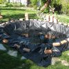 Ich habe jede Menge Mauerziegel gebraucht, dazu Mörtel (selbst gemischt mit der Mischmaschine), Schotter, Decken und alte Handtücher als Vlies, Teichfolie.