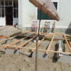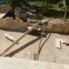 Mein Nachbar hat sich eine schöne Terrasse für den Garten gewünscht. Groß sollte sie sein, das war wichtig, weil man später hier mit vielen Menschen schöne Stunden verbringen wollte. Ausgangspunkt war eine in den Garten schräg abfallende Betonierung, und ein Betonsockel direkt am Haus, der etwa 2 Meter in den Garten ragte. Hier sollte die Terrasse um mindestens 2 – 3 Meter in den Garten verlängert werden, bei einer Breite von etwas über 5 Meter.