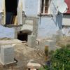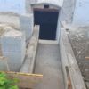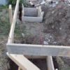 Nachdem die Punktfundamente fertiggestellt waren, wurde auch der Kellerzugang gemacht: Dafür wurde ein ca. 1,30 Meter breiter Gang ausgehoben und Seiten wurden mit Ziegeln und Eisen abgestützt. Der Boden wurde betoniert, ebenso die zwei Stufen zum Kellereingang.