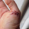 Während des Verlegens des Bodens ist ein kleiner Unfall passiert. Ich war schon müde, es war extrem heiß und ich wollte – schnell-schnell – noch vor der Arbeit ein Brett zuschneiden und habe es nicht ordentlich aufgelegt. Darauf hin hat sich die Säge verkantet, wurde mir aus der Hand geschlagen und ist die laufende Säge ist in meine Hand eingedrungen. Ich habe es kommen sehen, so zwei Sekunden vorher, aber da war nichts mehr zu machen. Die Wunde musste ärztlich versorgt und genäht werden und es hat insgesamt fast 1 1/2 Jahre gedauert, bis ich die Hand wieder schmerzfrei belasten konnte.