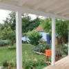 Auch ein Gewächshaus (das ich in einem eigenen Projekt beschrieben habe) war da. Sowohl der Vorbau des Kellereingangs als auch das Gewächshaus mussten weichen. Ein etwas schwieriger Teil war, die Neigung des Daches exakt zu berechnen, aber mit ein, zwei Versuchen war auch das geschafft, auch dazu gibt es eigene Online-Rechner. Zu entscheiden war weiter, auf welcher Seite der Durchbruch aus dem Haus erfolgen sollte und auf welcher Seite sich der Treppenaufgang zur Veranda befinden sollte. Bezüglich des Treppenaufgangs war letztlich entscheidend, dass der Kräutergarten direkt vor dem Haus erhalten bleiben sollte UND ich mir nicht vorstellen konnte, am Rand zu den Nachbarn zu sitzen, auch wenn das auf den ersten Blick die räumlich bessere Lösung gewesen wäre.