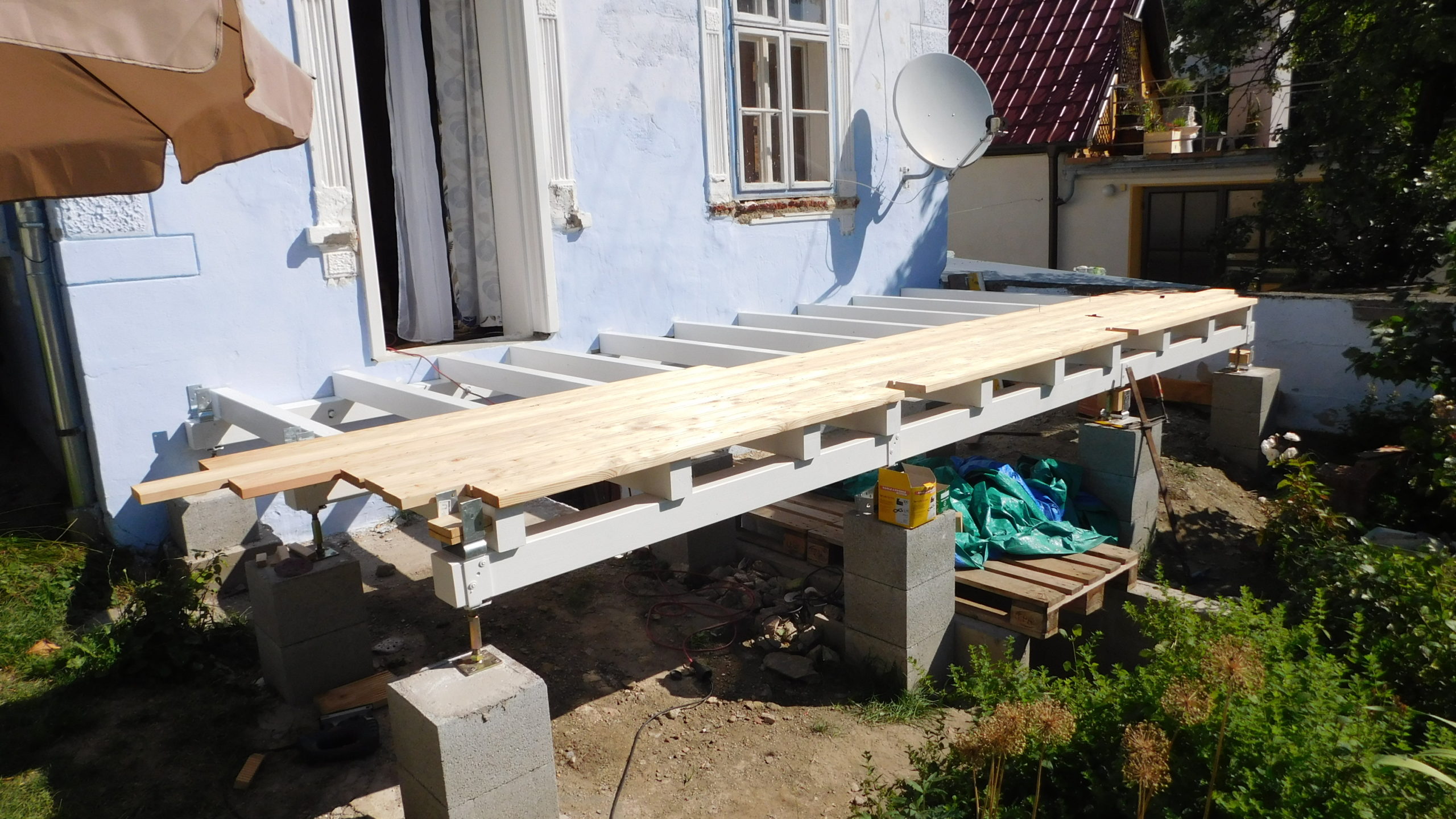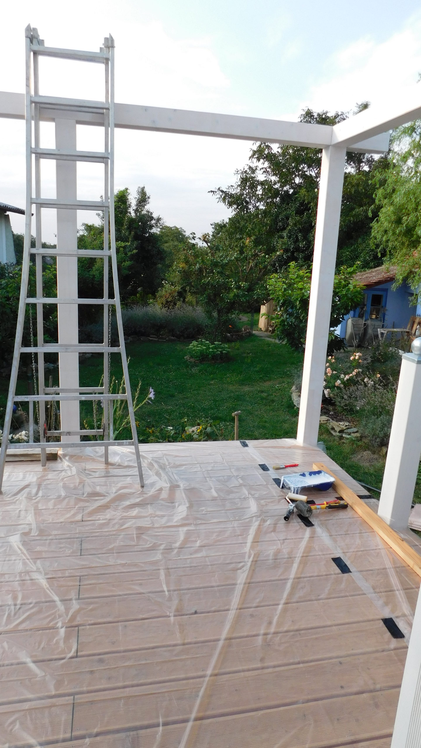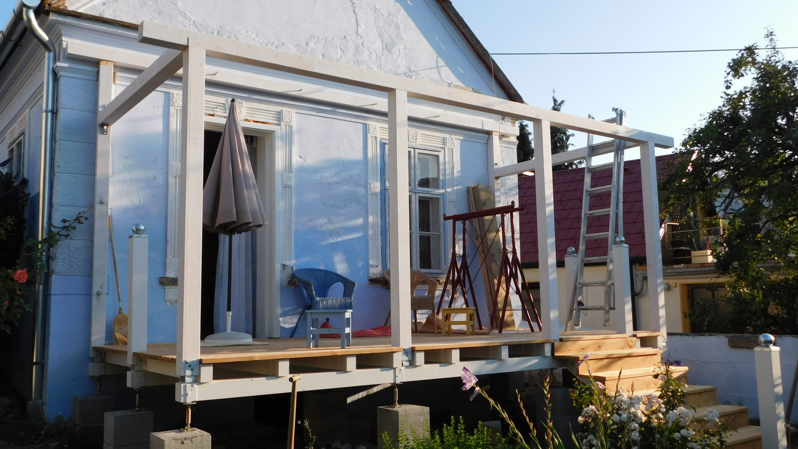 So ein Projekt will gut geplant werden, kleinere Hindernisse tauchen ohnehin auf, da kann man auf große, die man durch Planung wettmachen kann, verzichten. Man muss Zeit mitbringen, selbst wenn zwei oder drei Leute mit anpacken, geht da nichts ruck-zuck, allein schon wegen des Anstrichs in vier Schichten. Das Wohngefühl der Veranda ist unschlagbar, die Mühe ist das wirklich wert.