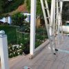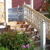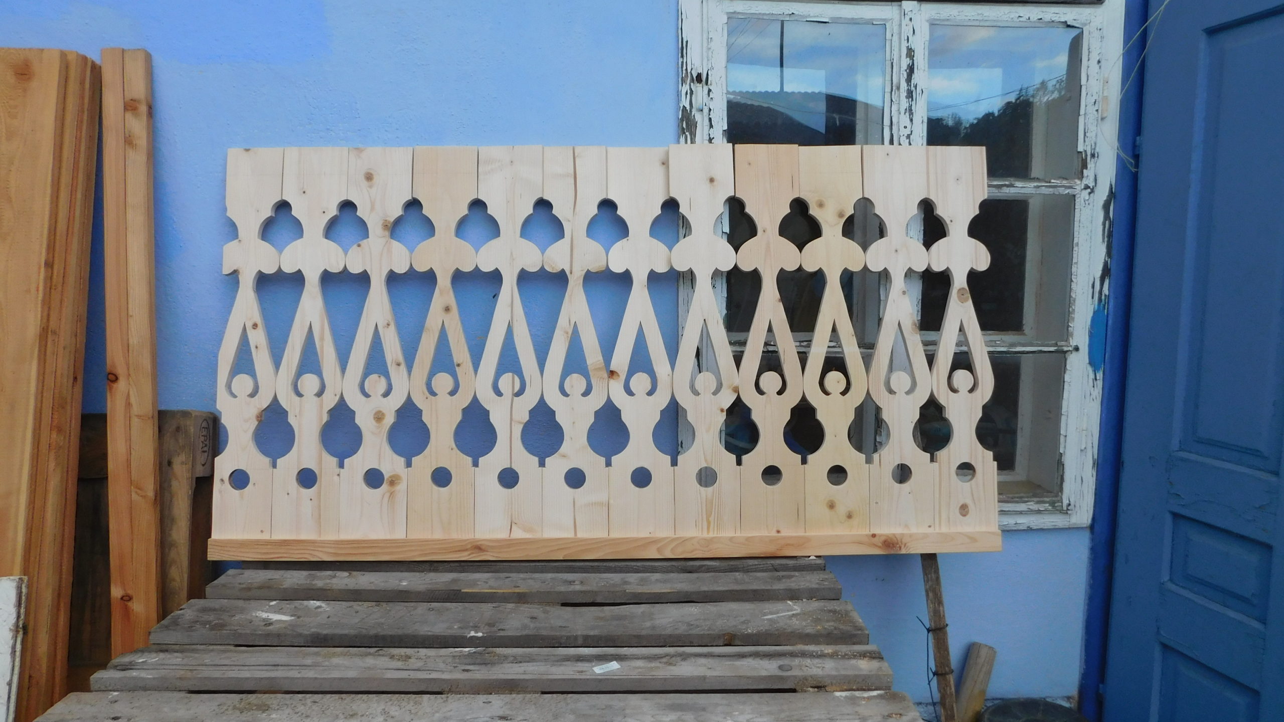 Ich habe für das Geländer eine Höhe festgelegt, dabei habe ich mich an üblichen Geländerhöhen orientiert, die als „sicher“ gelten. Bei der Höhe der Bretter habe ich berücksichtigt, dass die Bretter später in Schienen stehen würde und auch noch ein Handlauf montiert werden würde. Die Handläufe sowie die unteren Befestigungen habe ich in Ungarn beim Tischler machen lassen.