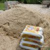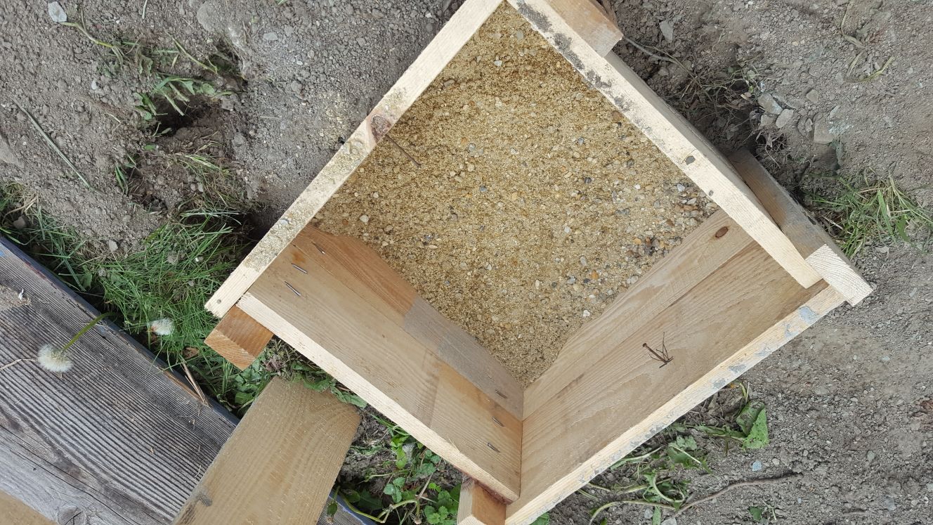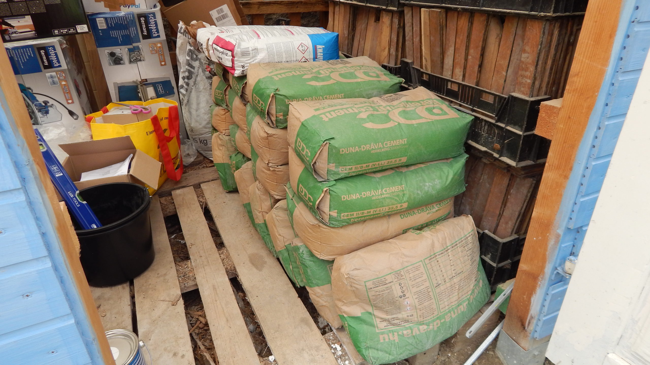 - Zement und Sand für den Beton Kies für das Schottern der Fundamente