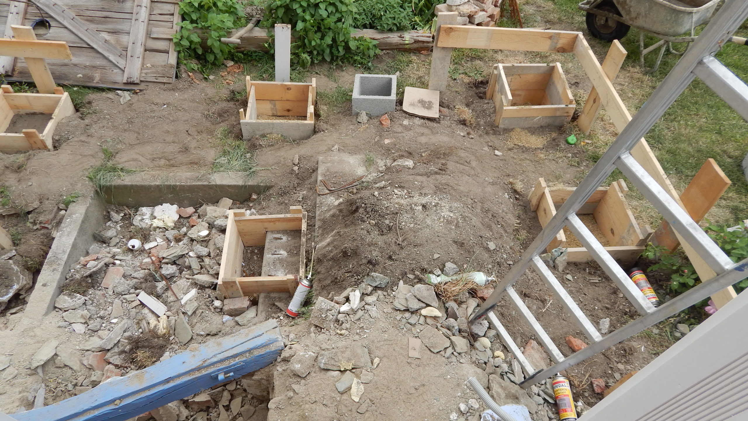 Als Vorbereitung für den Verandabau mussten das Gewächshaus abmontiert werden sowie der massiv gebaute Kellereingang weichen.
