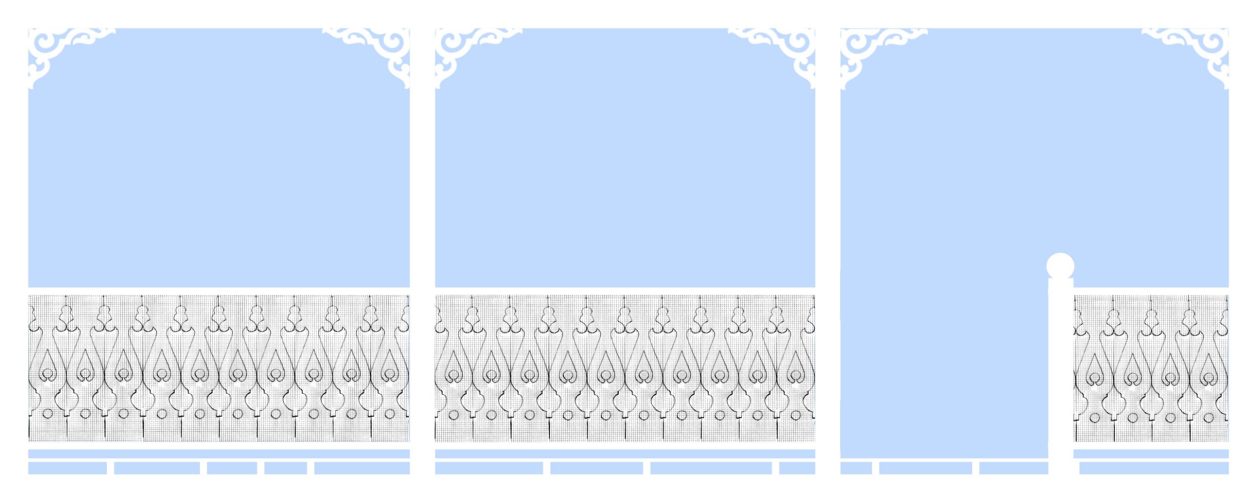 - Kappen für die Verzierung der stehenden kurzen Pfosten
