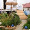 Nachdem nun die Veranda grundsätzlich stand, war die Frage: Wo kommt die Treppe in den Garten hin? Und wie wird die gebaut? Ich habe ein Onlinetool zur Berechnung der Höhe und Steigung der Treppe verwendet und das hat wirklich gut funktioniert. Für mich war auch schnell klar, dass die Treppe an den Rand rücken wird, also hin zur Gartenmauer und nicht mittig in den Garten führen wird. Die Entscheidung hat sich auch im Nachhinein als gut erwiesen, weil dadurch fast der gesamte Kräutergarten erhalten bleiben konnte.
