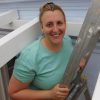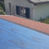 Doch der Zeitpunkt kam, als selbst die längste Leiter nicht mehr gereicht hat und ich wusste: Jetzt musst du rauf aufs Dach. Ich hätte mich fast angekotzt und wäre nicht meine Schwester – beste Co-Workerin ever – dann aufs Dach geklettert, ich glaube, ich hätte das Dach sein lassen :-)). Aber nachdem sie dann mal oben war, wollte ich mich natürlich nicht als Feigling erweisen und bin auch aufs Dach. Es ist eine Übungssache, so hoch über dem Boden zu arbeiten, reine Kopfsache. Man gewöhnt sich dran. Die Bretter wurden so weit gesetzt, bis dann nur noch unsere Ein- und Ausstiegslucke aufs Dach frei war. Über diese Luke haben wir Material und Bretter durchgereicht und im nächsten Schritt die Bitumenziegel hochgezogen.