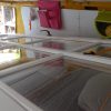 Während des Verlegens des Bodens ist ein kleiner Unfall passiert. Ich war schon müde, es war extrem heiß und ich wollte – schnell-schnell – noch vor der Arbeit ein Brett zuschneiden und habe es nicht ordentlich aufgelegt. Darauf hin hat sich die Säge verkantet, wurde mir aus der Hand geschlagen und ist die laufende Säge ist in meine Hand eingedrungen. Ich habe es kommen sehen, so zwei Sekunden vorher, aber da war nichts mehr zu machen. Die Wunde musste ärztlich versorgt und genäht werden und es hat insgesamt fast 1 1/2 Jahre gedauert, bis ich die Hand wieder schmerzfrei belasten konnte.
